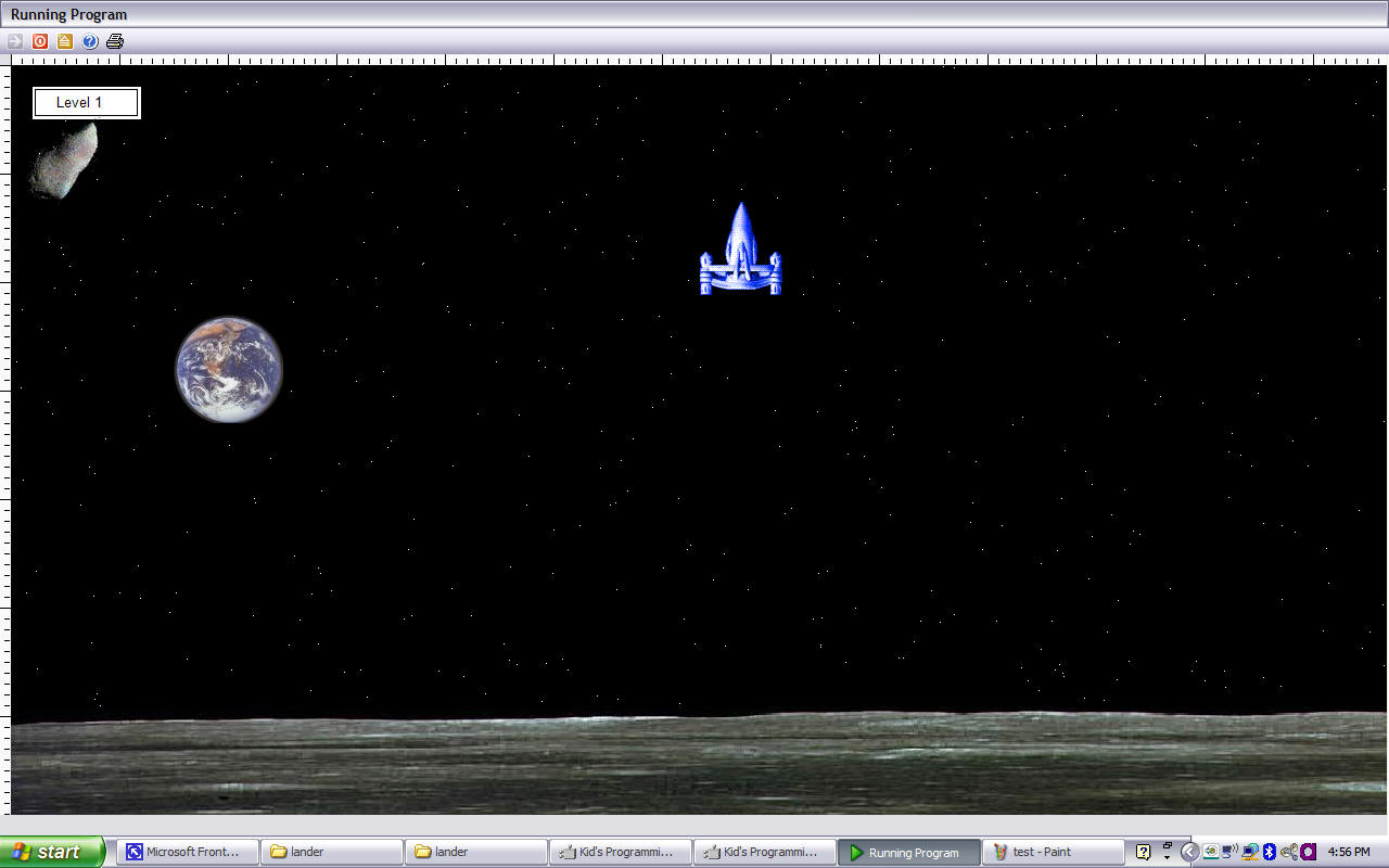 The surface of the moon, the earth in the background and the meteor are all photographs from NASA that were put into the game. You have to download the entire game folder, graphics and all, by RIGHT CLICKING it and saving it to your user folder in order to play. Once you do that, open your user folder by double clicking on my computer and then your folder. Right click on the Lander folder and choose EXTRACT from the menu that pops up. Keep clicking next, then finish and then open the lander folder. Now you can play the game.